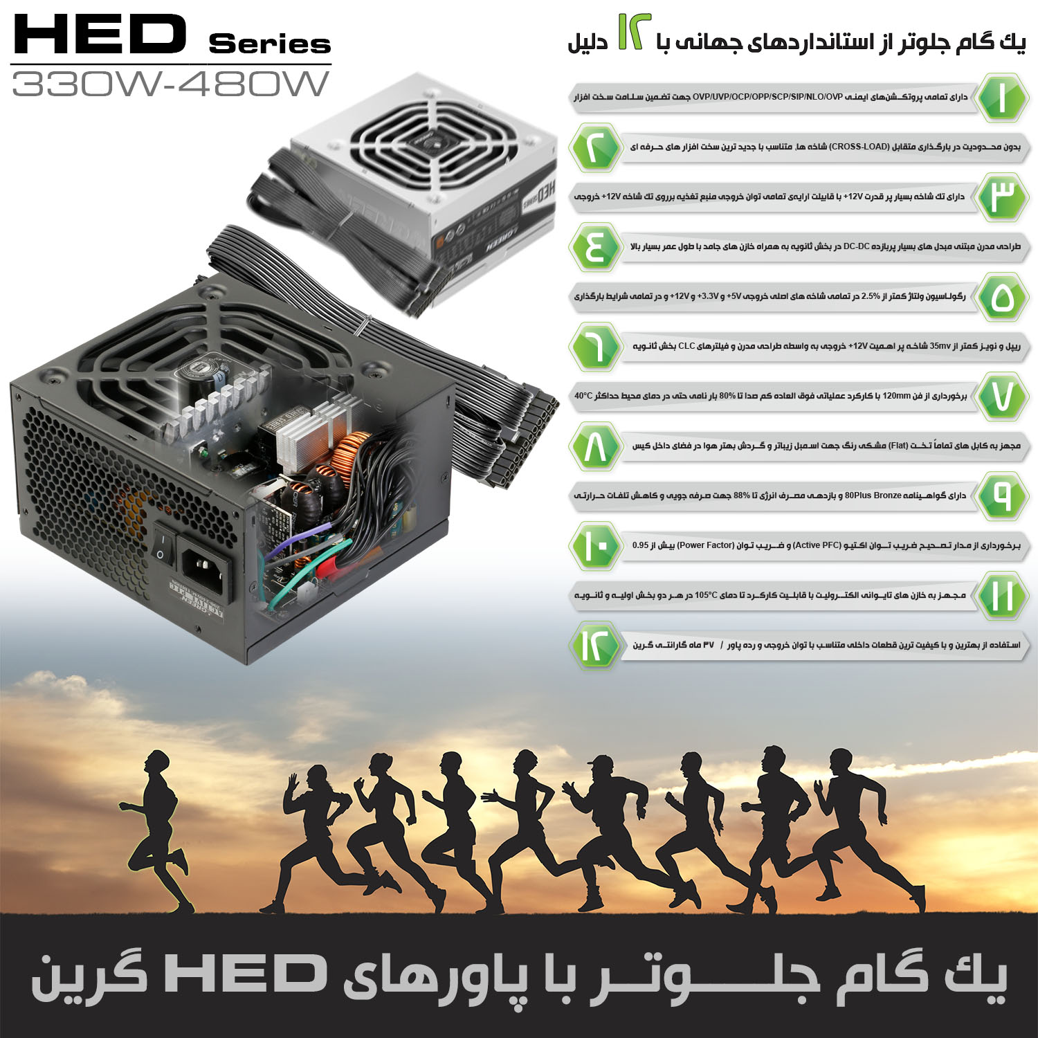 سری جدید HED در رنج توانی 330W - 480W عرضه خواهند شد که در ابتدا مدل GREEN GP330A-HED و GREEN GP380A-HED روانه بازار و در ادامه مدل های GREEN GP430A-HED و GREEN GP480A-HED عرضه خواهند شد.